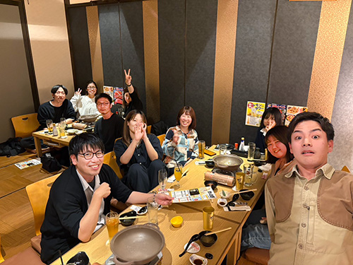 美味しい食事とお酒を囲みながら、各部署の仕事の話から趣味の話まで、楽しい時間を過ごしました。