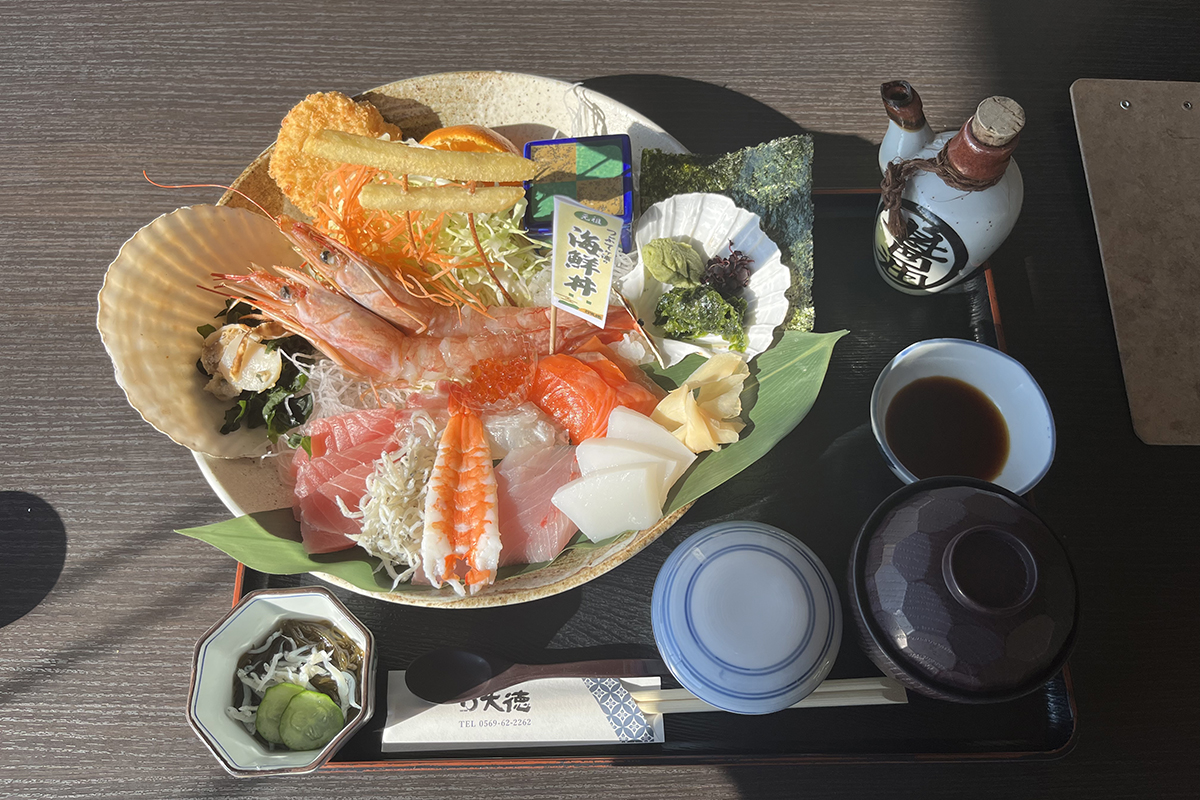 そして、🌊海沿いと言えば…やっぱり海鮮丼!この鳥居のすぐ近くにある大徳さんへ1日10食限定の特大海鮮丼を頂きました!旬のお魚と大きな海老!🦐🐟🦑